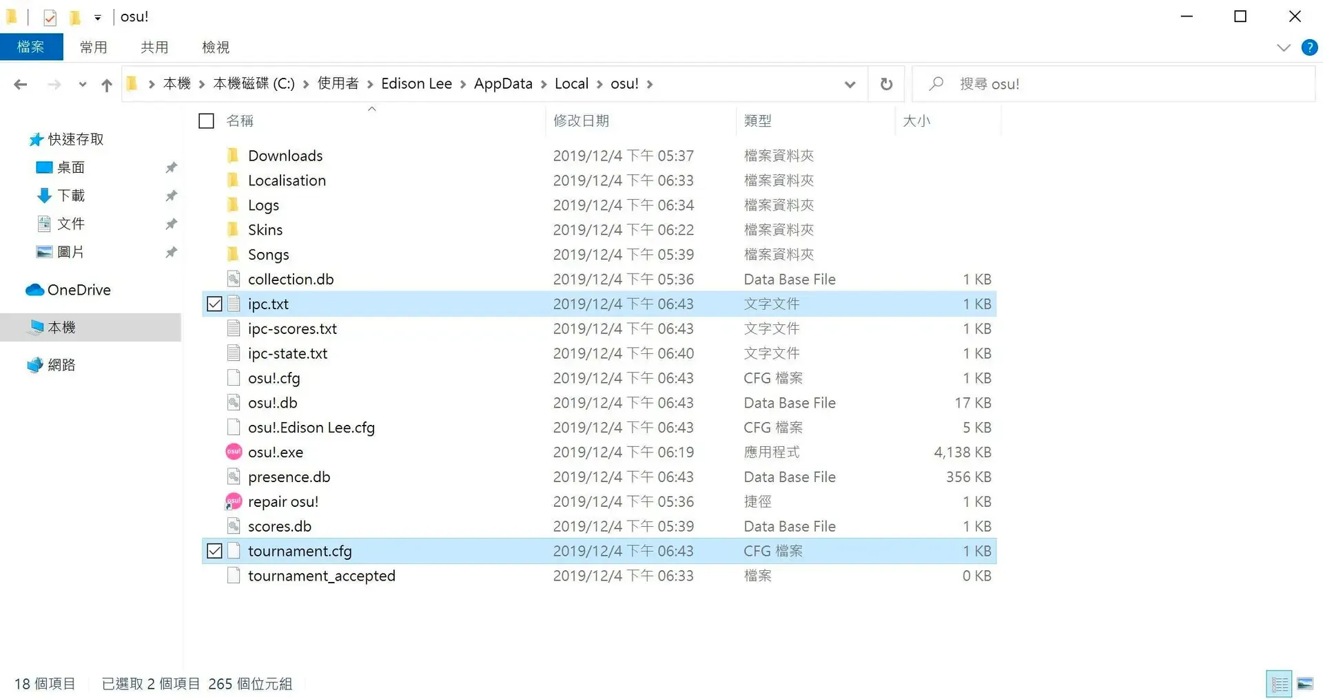 接著退出遊戲,到 osu! 的安裝資料夾 (如果沒有特別更改,通常在