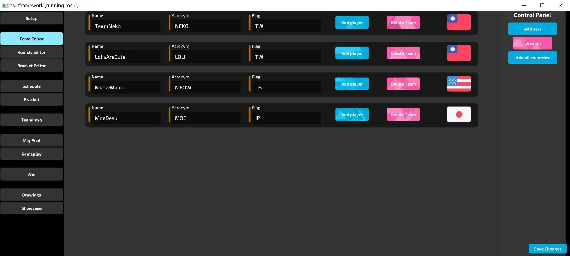 - Add all countries: 把全部國家的名稱當成隊名都加進去