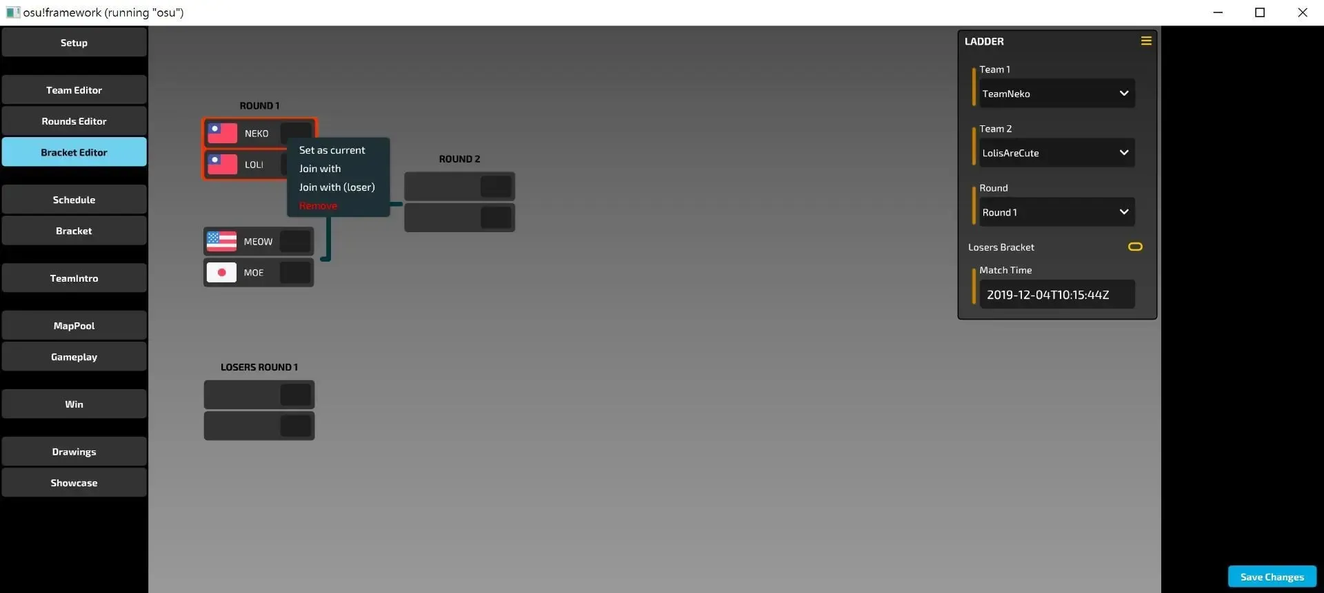 - Round: 該對戰是屬於哪個回合 (和剛剛在 Rounds Editor 中所設定的做對應)