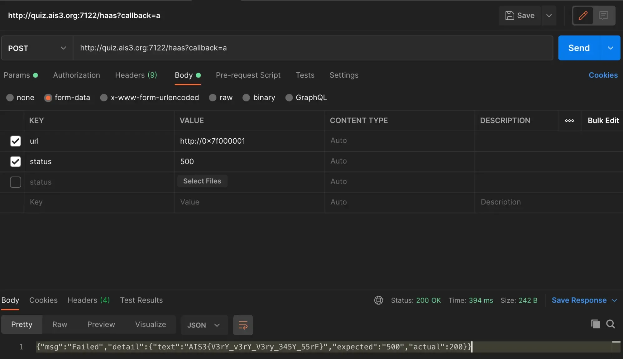 如果直接通 quiz.ais3.org:8100 是不會通的,但卻有上面兩組 HTTP 請求 所以代表 server 是看 header 的 Host 來決定通不通,把 Host 換成 magic.ais3.org 之後就通了。